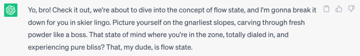 We asked our good friend ChatGPT to describe ‘flow state’ in the style of a freestyle skier.
