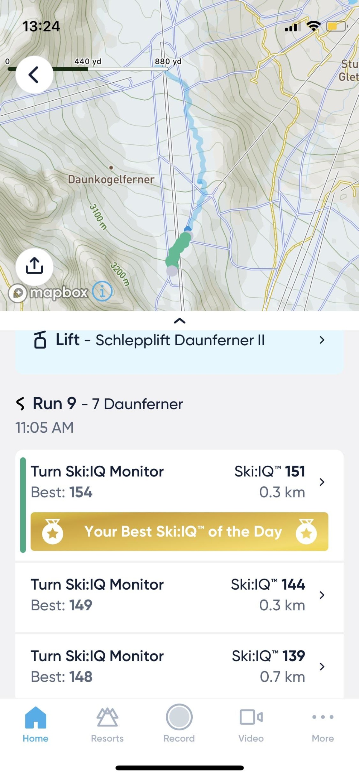 When I joined Carv my Ski:IQ was 112 and I spent the season working on it, levelling up several times and finishing the season with a best Ski:IQ of 147.