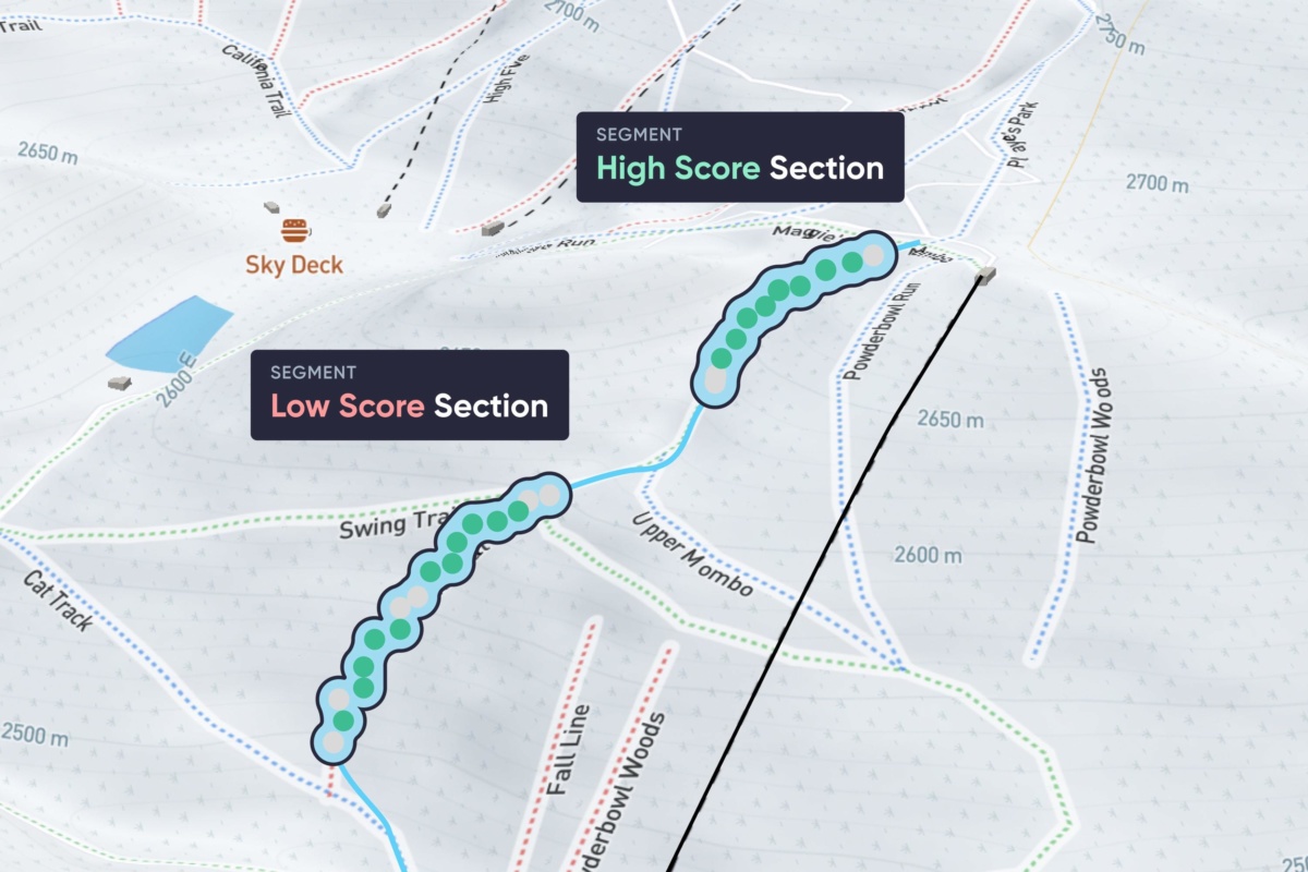 First things first, spend the first part of your day in Free Ski mode to gather segment scores throughout your resort. From this data, you can look through the map and see which runs and segments gave you your highest Ski:IQ scores - going as far as finding the perfect spot on the pitch through the Segmentation tool.