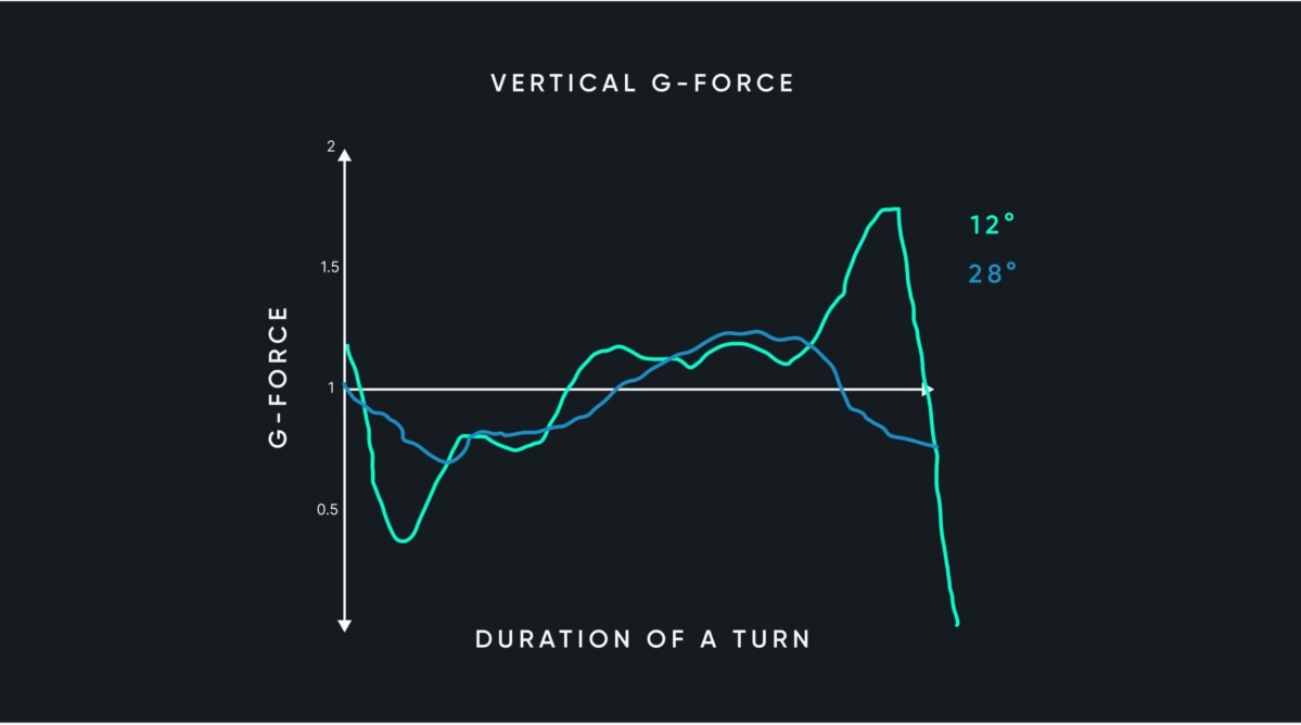 To assess how well a skier is unweighting, Carv looks at the vertical G-force a skier experiences throughout a turn.