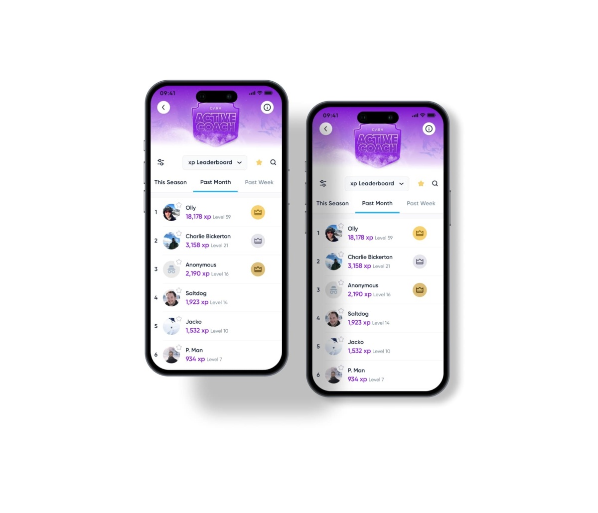 Alongside the new XP system, we’re introducing a couple of new leaderboards, so you’ve got a new way to compete with your Carv buddies. The XP leaderboard showcases who's pushing their limits. Additionally, there's a leaderboard for streaks, letting you see who's maintaining the most consistent performance and which of your friends are finding that flow state.