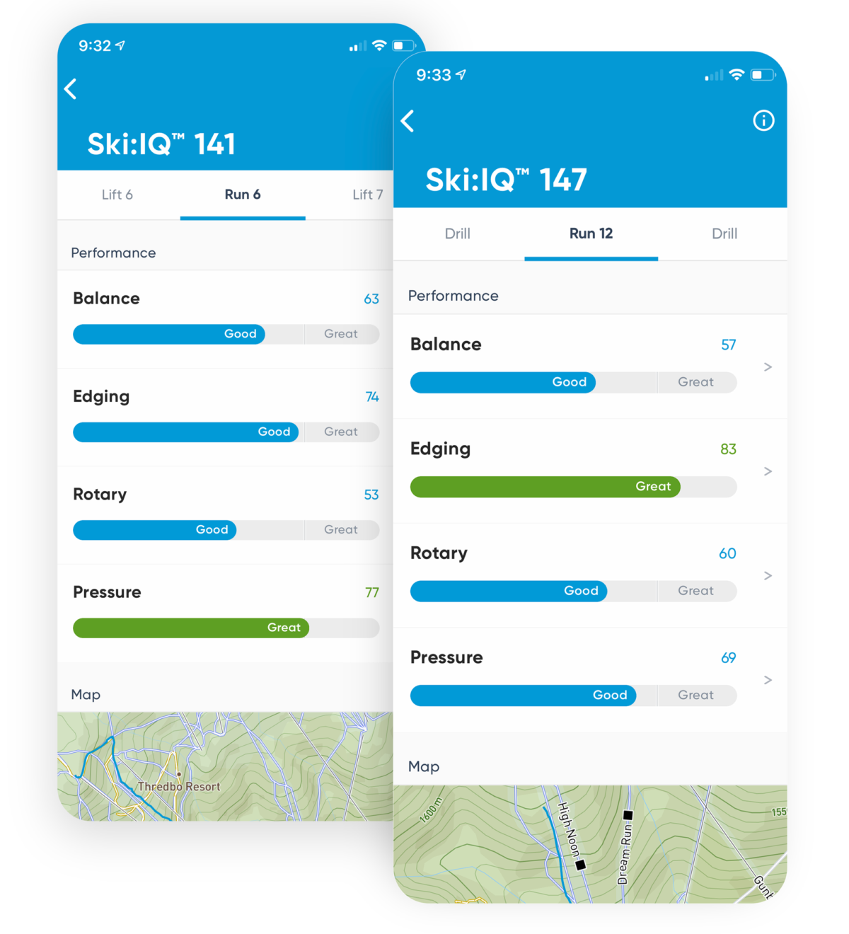 On each of the ten days that I have used Carv, I have done so at the same resort, in similar snow conditions and on similar runs. The snow conditions varied from hard to soft piste and from groomed to chopped, but no powder. On the first two days, it evaluated my best run on each day with a Ski:IQ of 141 – I found this to be amazingly consistent. I was eager to see what happened on the third day: it evaluated my best run at a Ski:IQ of 143, and on the fourth day, a Ski:IQ of 141 again – these were very consistent results. It appeared that Carv was consistently measuring my skiing ability, which provided me with a level of comfort that the method it used was trustworthy.