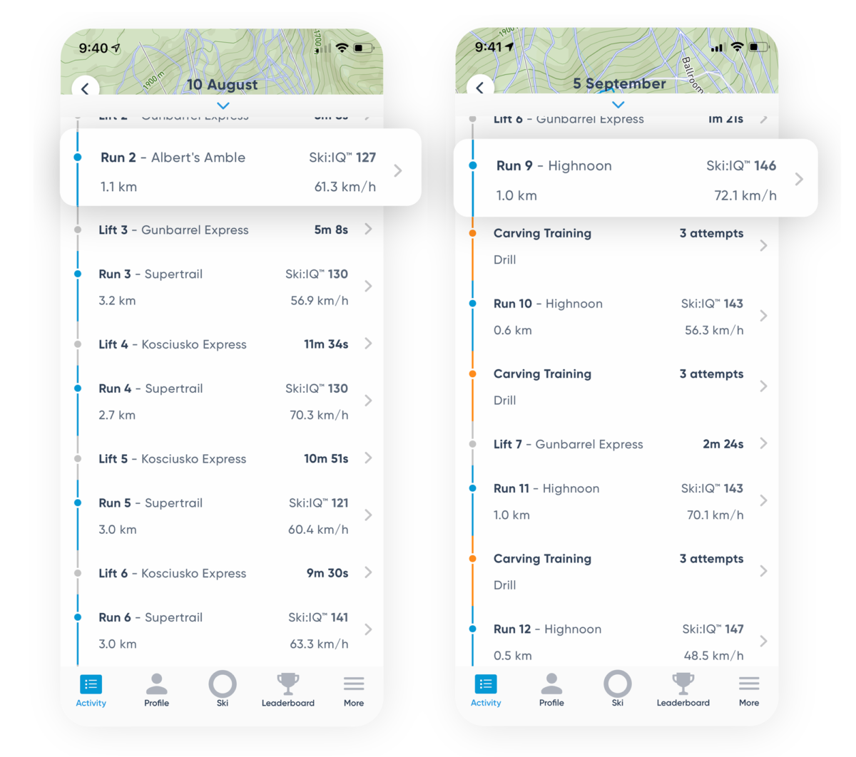 Carv also uses an algorithm that draws on data to calculate a Ski:IQ, which can be anywhere between 0 and 200. It does this for every run, and the highest Ski:IQ achieved on any run is then plotted on a worldwide Ski:IQ leaderboard, so you can compare your progress on the leaderboard with other Carv uses.