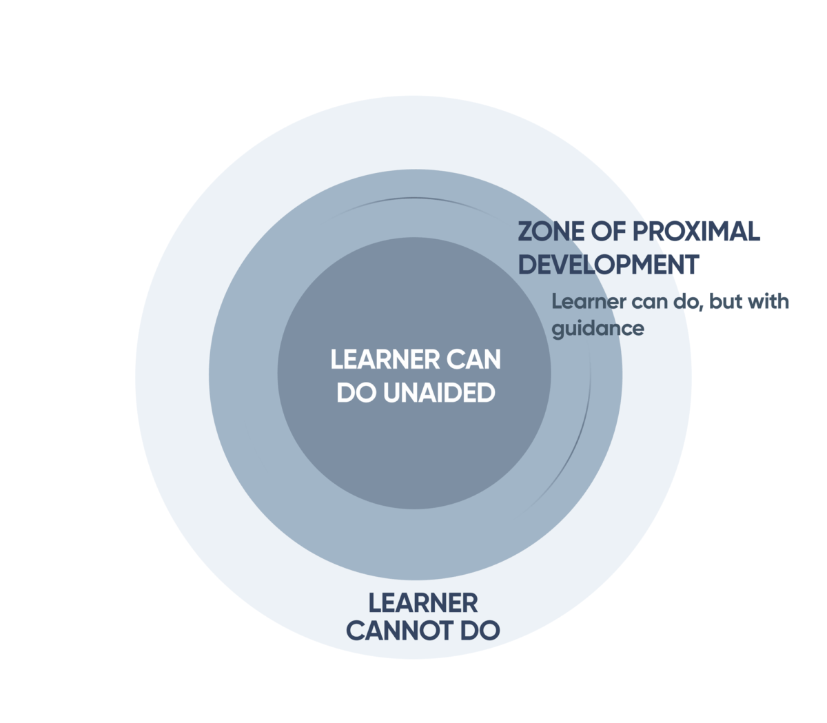 Essentially, we only learn when we are skiing, or doing any learning for that matter, when we are in “the zone”, where it may seem unfamiliar and in some cases anxiety provoking. Soviet psychologist Lev Vygotsky described this as the zone of proximal development, often described as what the learner can do on their own, and what they can do with the help of an expert. This zone, shown as the middle ring in the diagram above is where learning takes place. Skiing in the centre or the outside ring will not result in learning and a plateau will eventually occur, especially if we only stay in the centre.