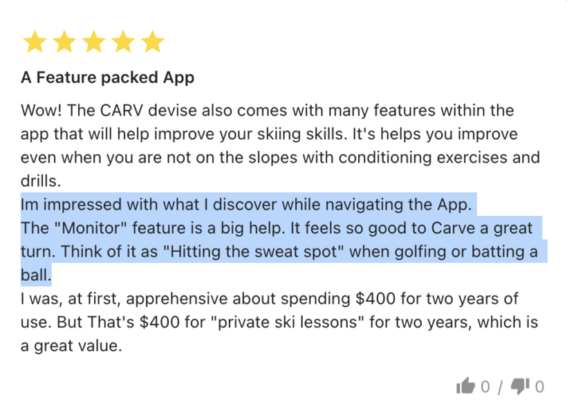 Carv measures the metrics 20 times a second, at every point in the turn. These metrics are only available through our technology, so we wanted our customers to have access to them in real time.