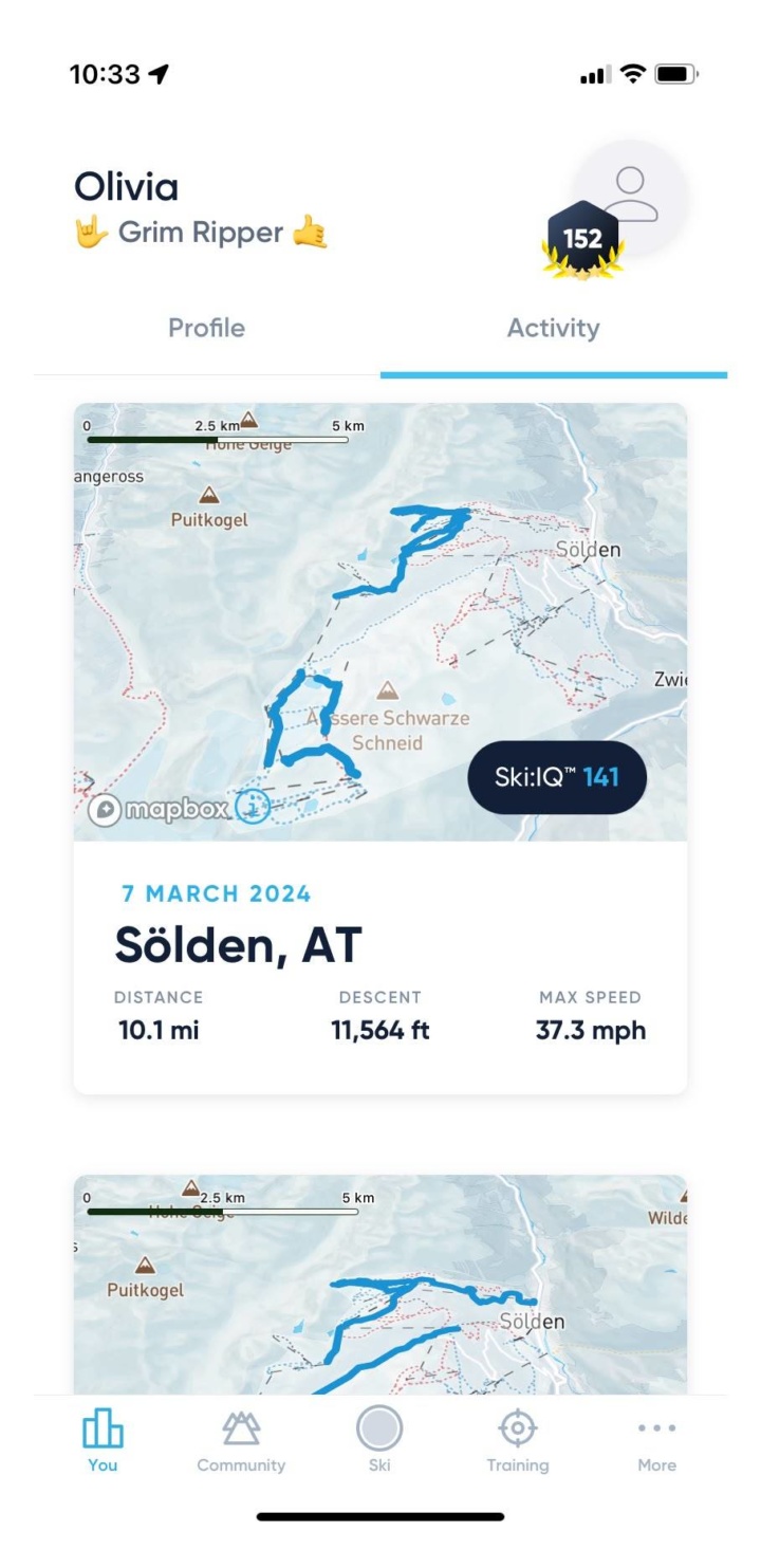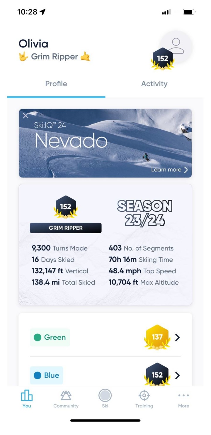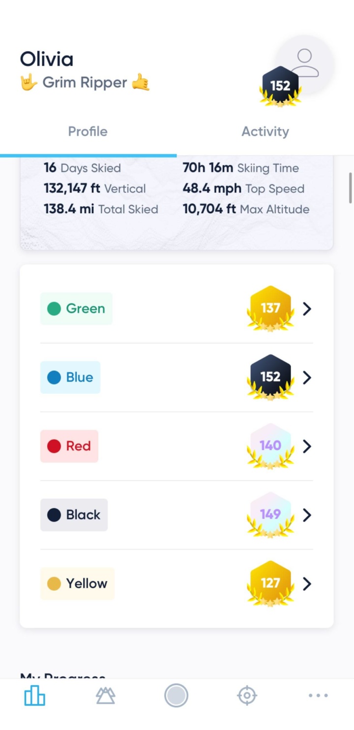 Your profile shows everything about your skiing, so you can keep an eye on your progress, and view your season so far.