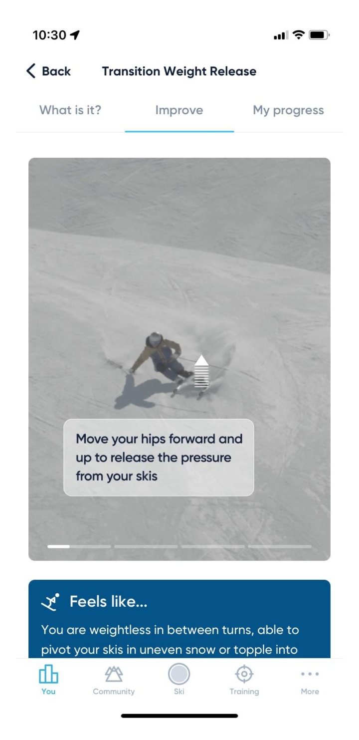 Just go skiing and let the magic happen. Carv turns your boot movement into simple, clear coaching tips.