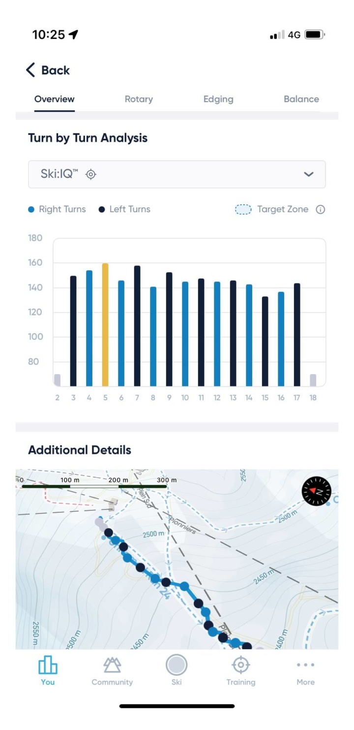 Access every detail of your runs—even compare how your right turns stack up against your left!