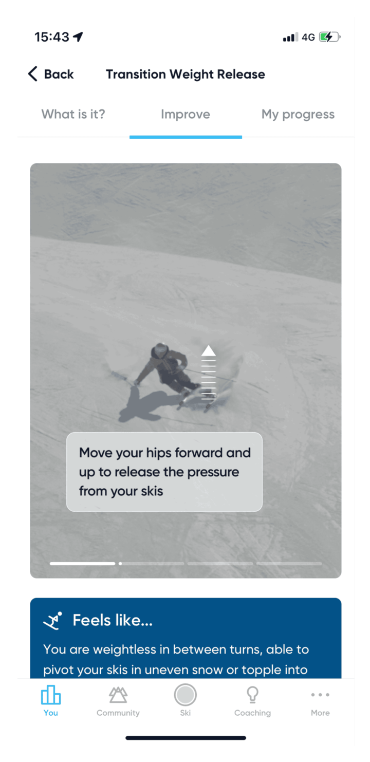 At this level, Carv will help you refine your ski technique and increase your carve depth and consistency on steeper slopes.