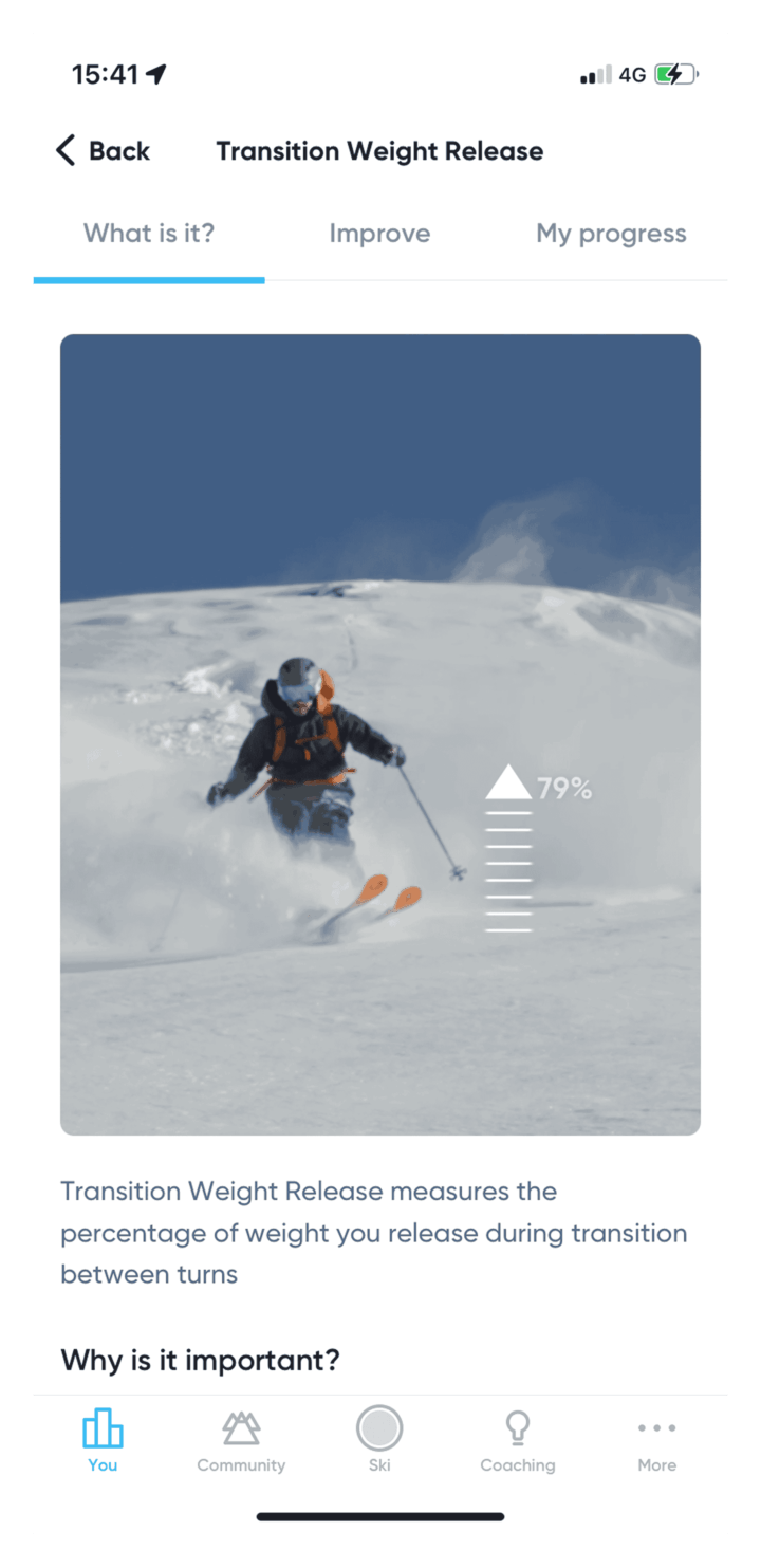 Transition Weight Release measures the percentage of weight you release during the transition between turns.
