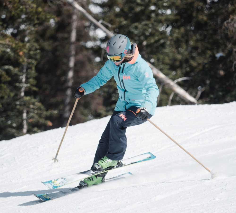 You're a confident parallel skier, linking turns on blue and red slopes and in well-groomed snow conditions. With a solid forward stance, you've got a good level of control through your turns.