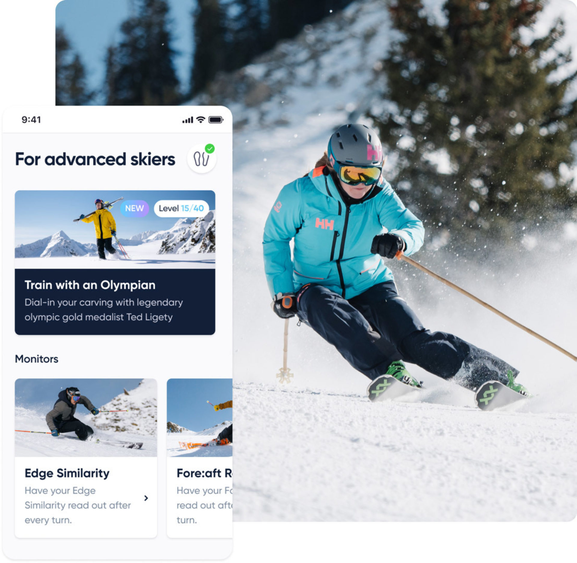 You'll work through 40 levels, focusing on 4 core metrics which form the foundation of great carving - Edge Similarity, Outside Ski Pressure, Early Edging, and Edge Angle - with advice from Ted along the way.