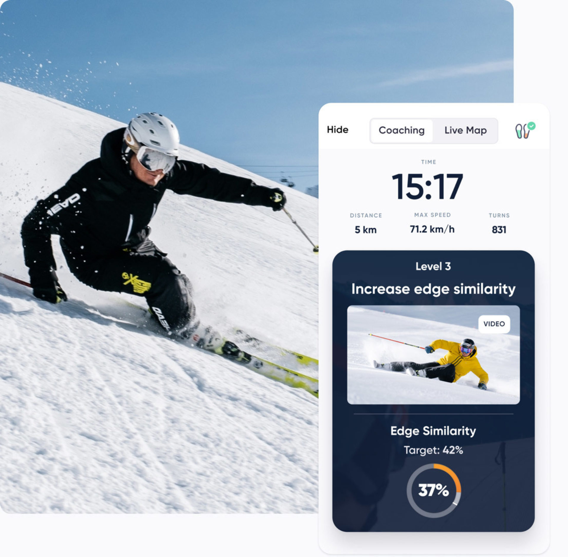 With the Edge Angle Monitor, you'll get an audio readout of your Edge Angle on every turn as you ski, so you can experiment with movements based on tips you've received, and instantly know when your changes are working.